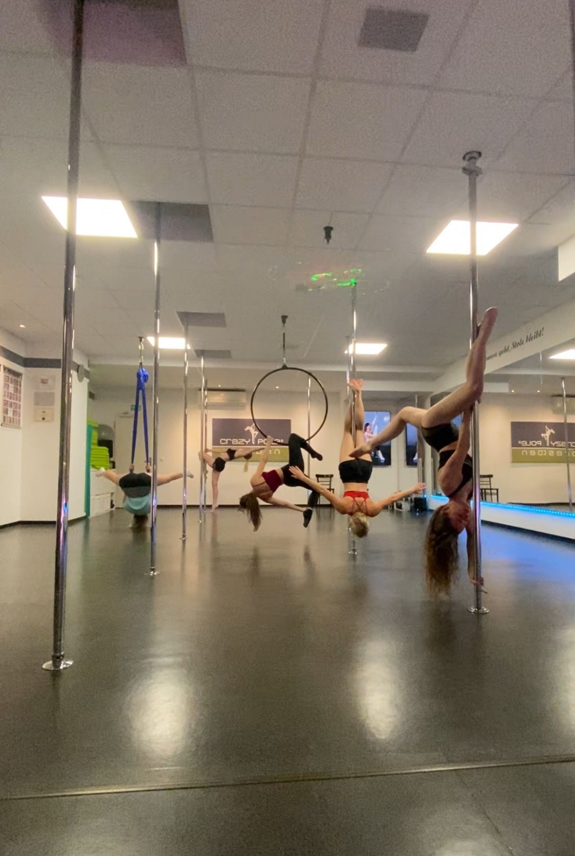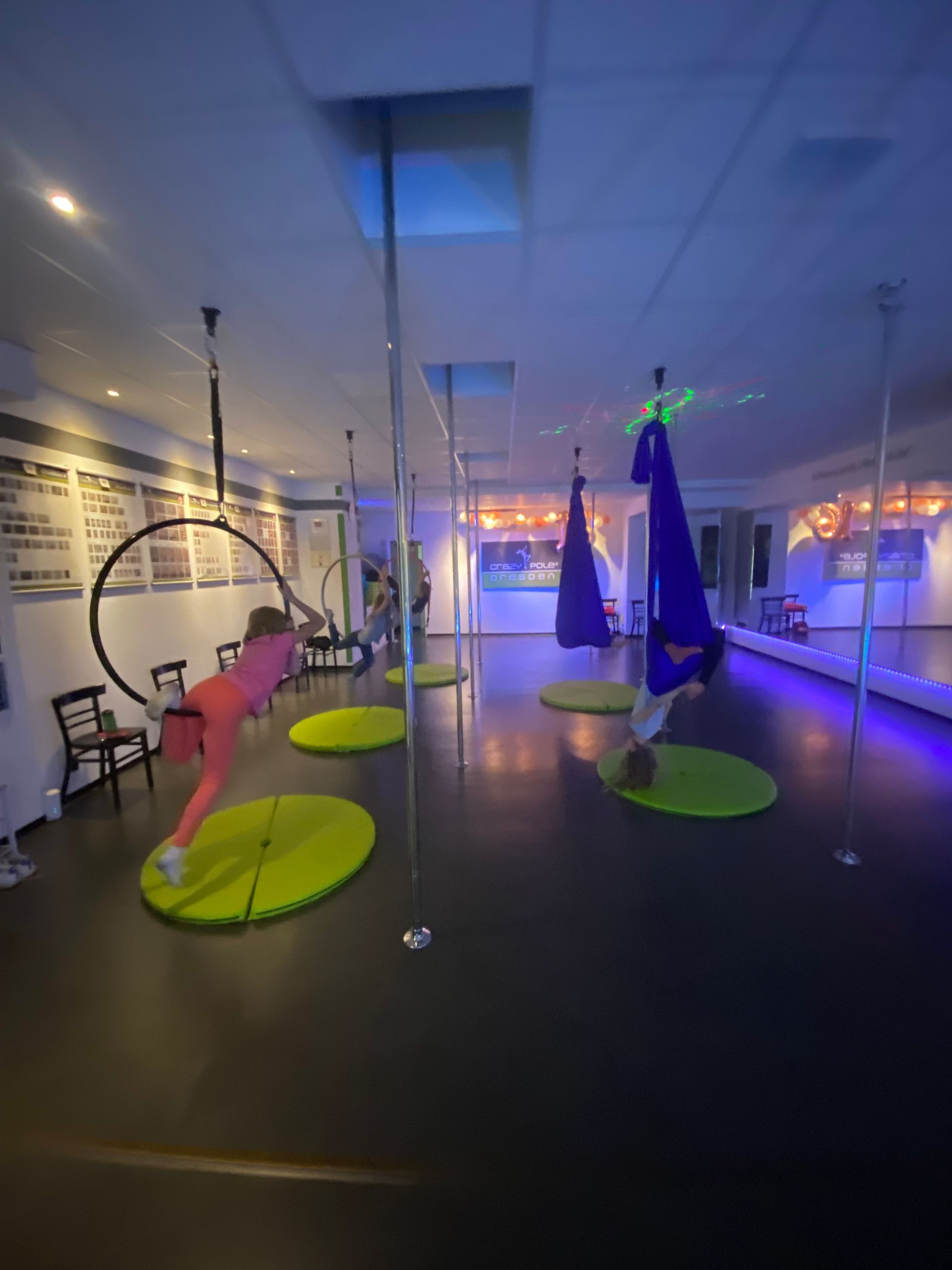 Denn bei Crazy (= außergewöhnlich) Pole (=Stange) geht es nicht nur um oder auf die Stange, wir bieten auch Luftakrobatik im Aerial Hoop- und Silkloop oder Chair Dance-, Stretching-, Burlesque oder Twerking-Kurse an.