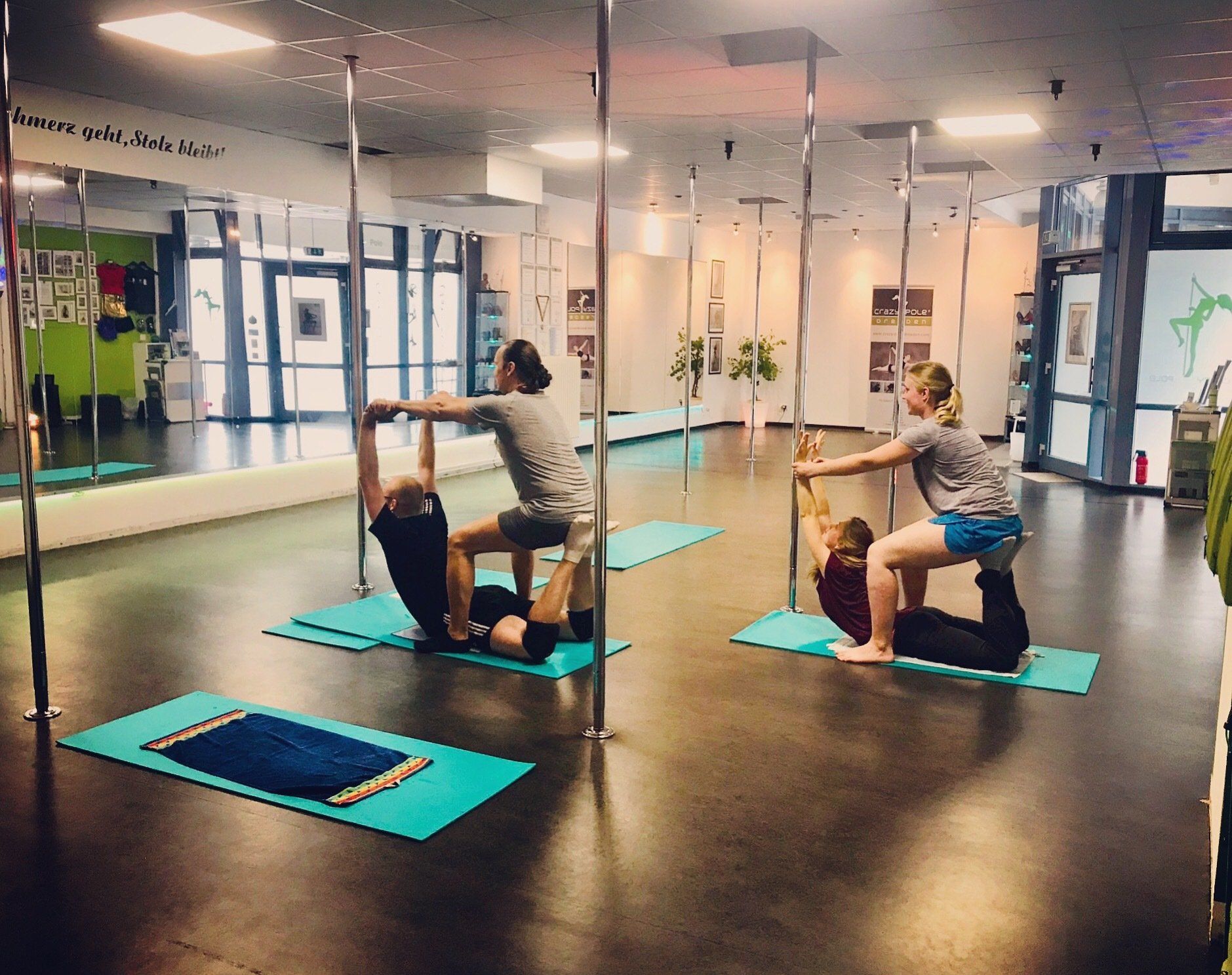 Auf unserer ca. 100 qm großen Tanzfläche mit 12 X-Pole Stangen (mit Spinning- und Staticmodus, Durchmesser 45 mm, Deckenhöhe bis zu 3,40 m) hast du genügend Platz zum Tanzen und Spaß haben. In unseren regulären Kursen steht jedem Teilnehmer sein eigenes Sportgerät zur Verfügung. Bei uns ist jeder herzlich willkommen, egal welches Level, Geschlecht oder Alter. Und nach dem Training kannst du gegen eine kleine Gebühr unsere Infrarotsauna genießen.
