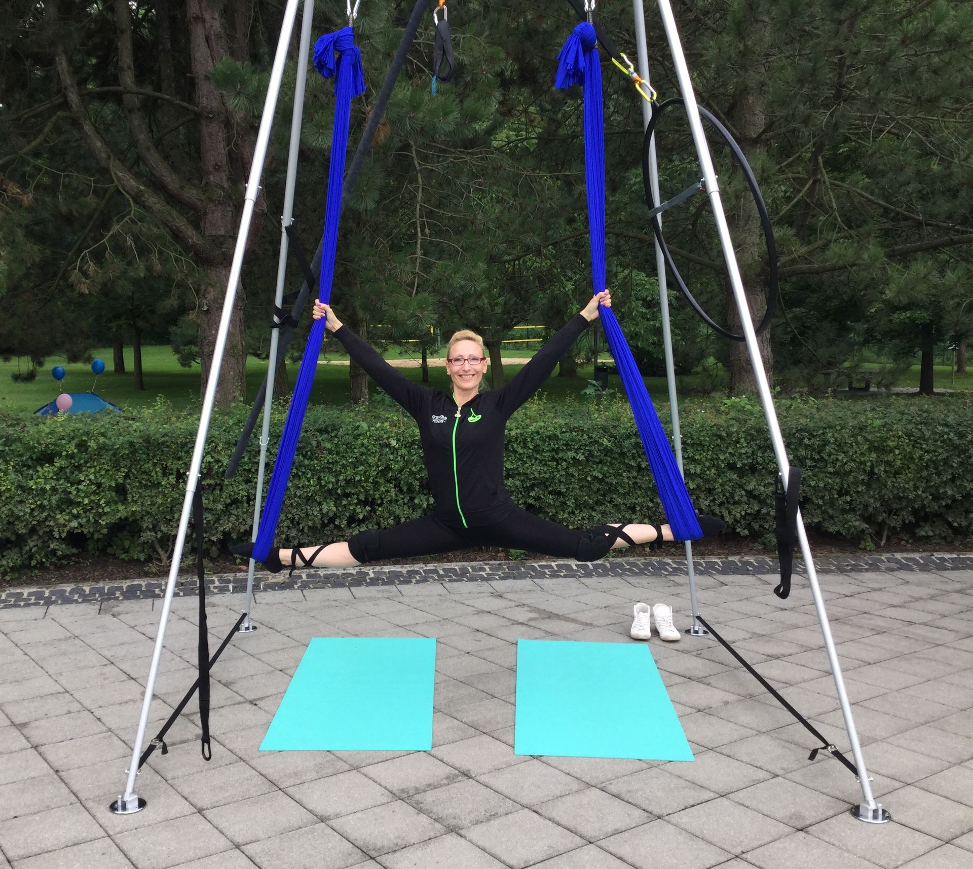 Gestell für Aerial Sport, Podest mit freistehender Stange. Lollipophoop, freistehende Stange mit Bodenschraube